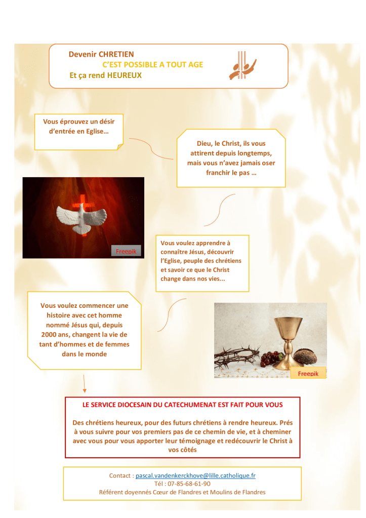 Tél : 07-85-68-61-90 Ou par mail : pascal.vandenkerckhove@lille.catholique.fr