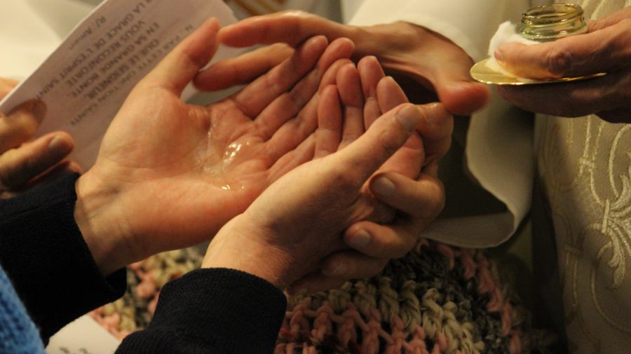 - L’essentiel du sacrement se trouve dans l’imposition des mains en silence, suivie de l’Onction faite avec l’Huile des malades bénie par l’évêque lors de la Messe Chrismale.